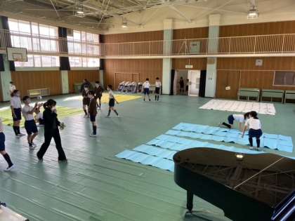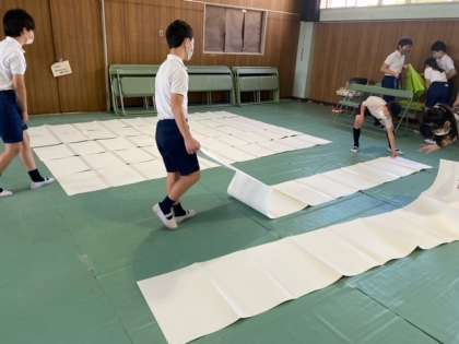 逃走中の後は、巨大折り鶴作りです。