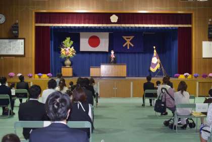 本日、入学式を行い、18人の新一年生を迎えました。新しい標準服、新しいランドセル。ピカピカの1年生。早く学校生活に慣れて、たくさんの友だちと一緒に、楽しく勉強や運動をしてほしいです。明日8日は始業式です。2年生から6年生までの在校生が、新1年生と会えるのを心待ちにしています。明日も元気に登校してくださいね。