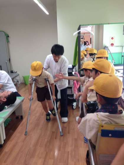 地域のお米屋さん、幼稚園、スーパーマーケット、クリーニング屋さん、整骨院、自転車屋さん、レンタカー会社、整形外科医にご協力いただき、仕事されている様子を見学させていただいたり、質問にこたえていただいたり、体験活動をさせていただいたりしました。
