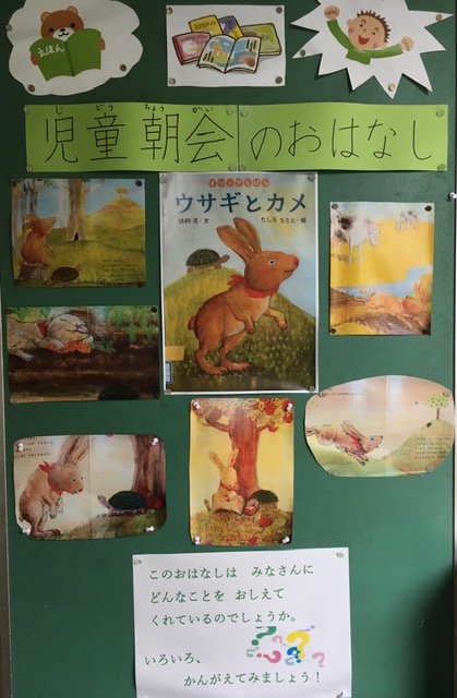 イソップ童話の「うさぎとかめ」のお話を紹介しました。