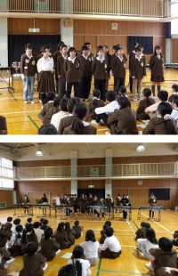 雨で外遊びができないので、教室の中でフルーツバスケットをしました。