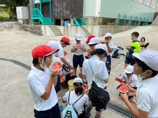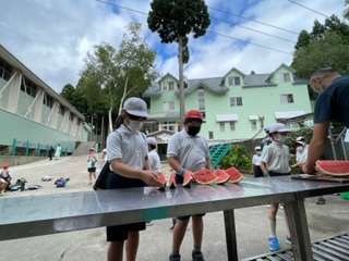 ロッジに戻ったら、宿舎の方がとっても甘くて美味しいスイカを用意してくださいました。