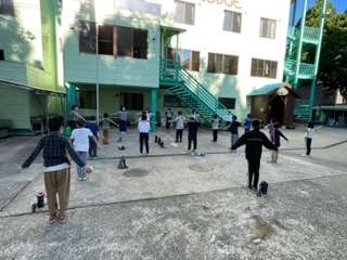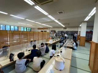 起床時刻には全員起き、時間通りに2日目がスタートしました。朝の集いの校長先生のお話では、大阪とのちがいについて考え、空気の綺麗さ、自然の多さ、水の冷たさなどに気づくことができました。