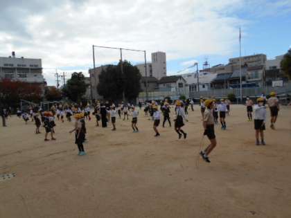 まえとび、うしろとび、かけあしとび、クロスとび、2じゅうとびなど、肌寒い中でしたが、子どもたちは元気に技を練習していました。