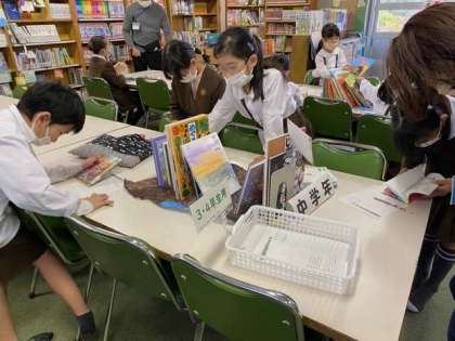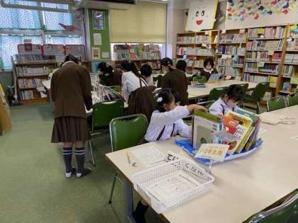 15分休みとお昼休みに図書室を開放しています。