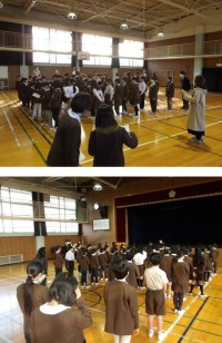 虫眼鏡で日光を集めて、黒い画用紙を焦がしています。始めてすぐに煙が出てきて、歓声が上がっていました。