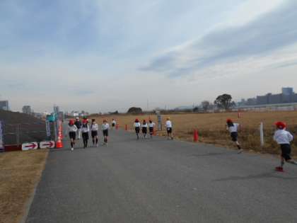 淀川河川敷を西中島地域から十三地域まで往復し、元気いっぱい走り切ることができました。ゴールした時は、皆が達成感あふれる表情でした。