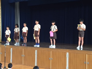 各学級から一人ずつ、夏休みの思い出を発表しました。
