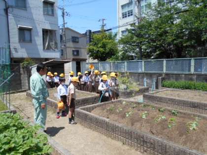 2年生は生活科で夏野菜のトマトと秋に収穫するさつまいもを栽培します。