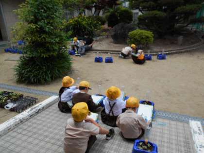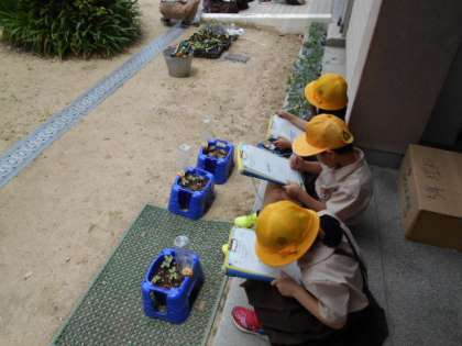 毎日欠かさず水やりをして子どもたちはアサガオの成長を見守っています。