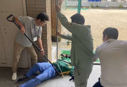 本日は、正門からの来校者に紛れて不審者が侵入した場合を想定し、不審者対応避難訓練を行いました。