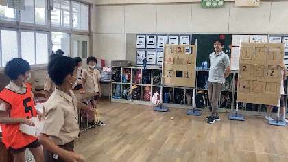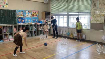児童は、ストラックアウトやボウリングに本気で挑みました。