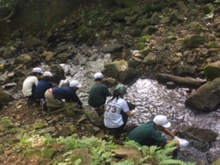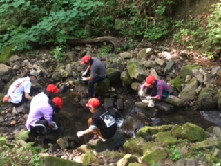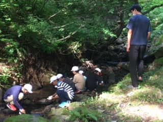次のプログラムは 焼き板磨き を近くに流れる川でしています。