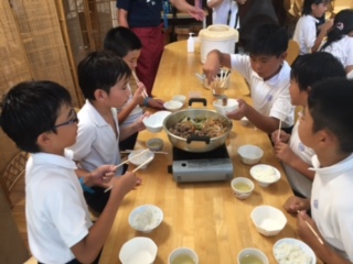 すき焼きを食べて うまー! と声を上げていました。食欲旺盛にモリモリ食べていました。
