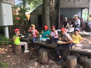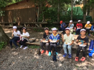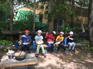 班で協力して火を起こし、野菜を切って、お米も研いで美味しい、美味しいカレーライスを作りました。
