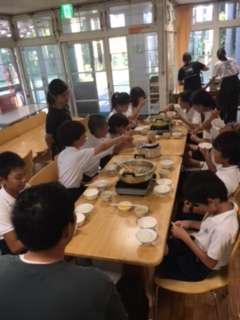 たくさん活動したので、お腹も空き、美味しく鍋を分け合っていました。