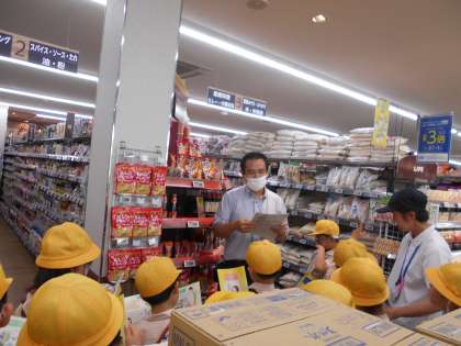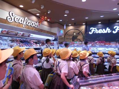 学校の近くのスーパーマーケットへ社会見学に行きました。