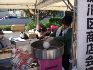晴天の中、大勢の人たちで賑わい、区民まつりが開催されました。木川南地域では、PTAの皆さんの協力で『わたがし』の販売をし、大繁盛でした。