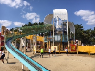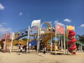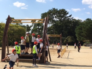 元気いっぱい遊具で遊んでいます。