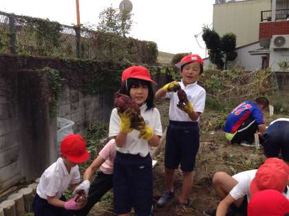 大きなサツマイモがいっぱい獲れて、みんな素敵な笑顔です。
