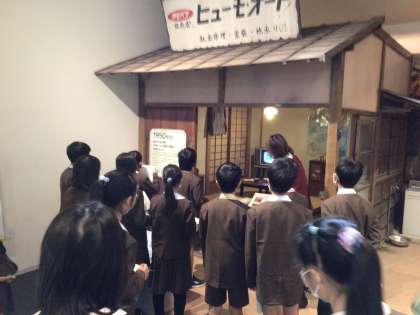 今までにダイハツで作られていた車の展示を見ながら、社会のようすと車の技術の進歩の教えていただきました。