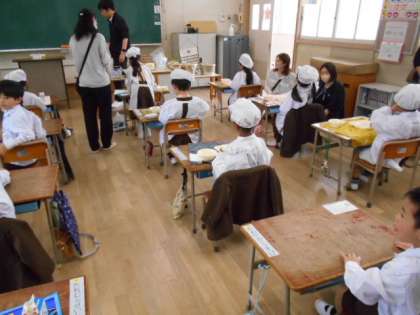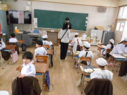 1年生は、はじめての参観で給食の様子をみていただきました。