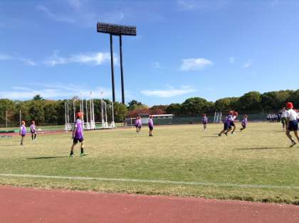淀川区と中央区の小学6年生とともにさわやかな秋空のもと、スポーツに親しんできました。