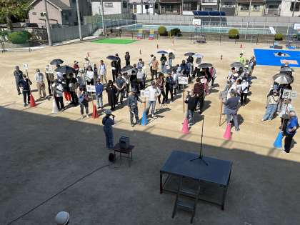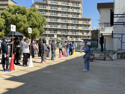 本日は、学校・地域・区役所・消防署が連携しての地域合同防災訓練です。