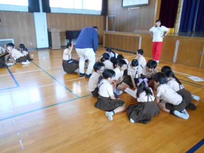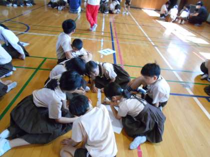 絵しりとりとは、絵を順番に描いてしりとりをする遊びです。言葉のしりとりではなく絵を描くことで苦労していましたが、全部描けてクリアしていた班もいくつかありました。