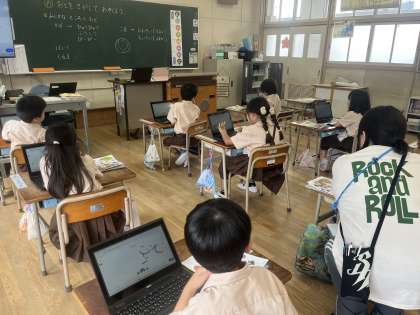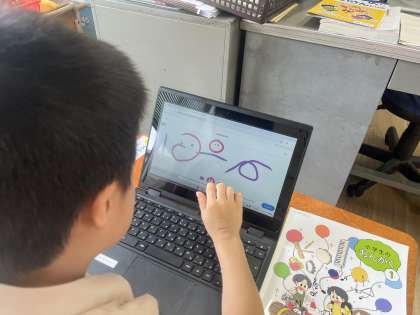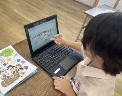 身のまわりの音に気づき、その音を言葉や音楽アプリをつかって表現しました。