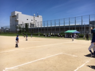 晴天に恵まれ、暑さも本番の中、大粒の汗を流しながら子どもたちは、木川南小学校と神津小学校の連合チームで試合に臨みました。