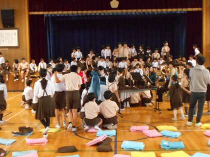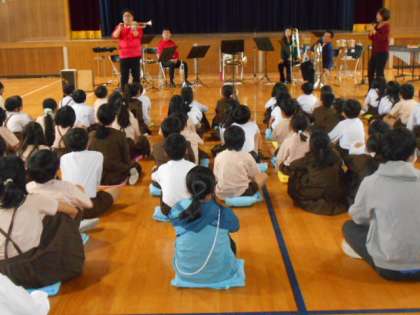 5時間目に全校児童が講堂で音楽鑑賞会をしました。