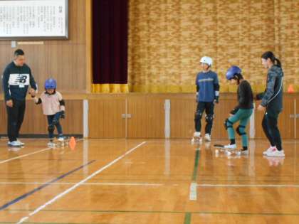 校長先生の説明をしっかり聞き、慎重に乗っています。