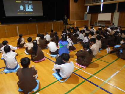 講師先生に来ていただき、4〜6年生がスマホの安全な使用方法について様々な事例から学習しました。