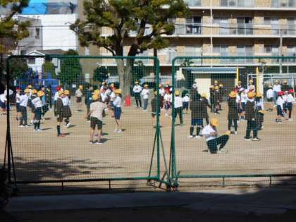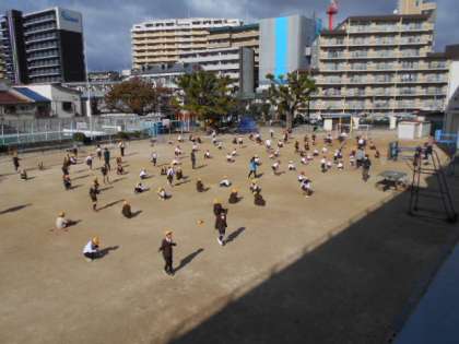 寒い中、元気よく今日は駆け足跳びに挑戦しました。