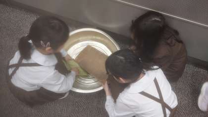 今日は社会見学でくらしの今昔館さんへ行ってきました!実際に昔の道具をさわったり、江戸時代の街並みの中を歩いたりすることができました!