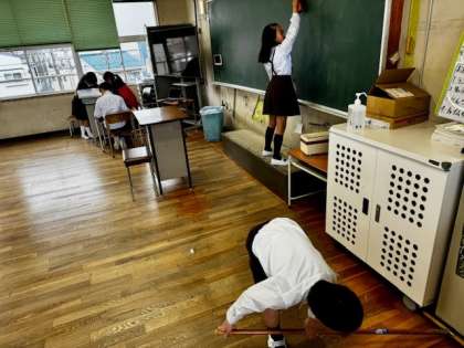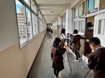 今日のお昼休みは、天気も雨が降りそうな感じだったので、教室で過ごす人が多かったようです。そんななか、予鈴でグラウンドから戻ってきた6年生の男の子たちが元気にピース!そして清掃の時間になると、みんなで役割分担をして校舎をきれいにしてくれました。いつもありがとう!