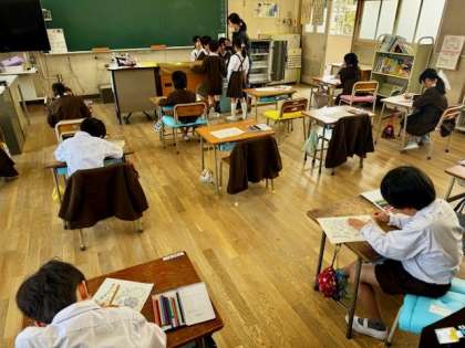 給食を食べた後も、2〜6年生のみなさんは6限まで元気に授業を受けています!色えんぴつやタブレットなど、道具を使ってとても丁寧に取り組んでいます。えらい!