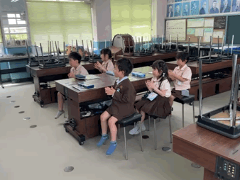 「たん・たん・たん・うん」のリズムをみんなで確認しています。うまいね〜!
