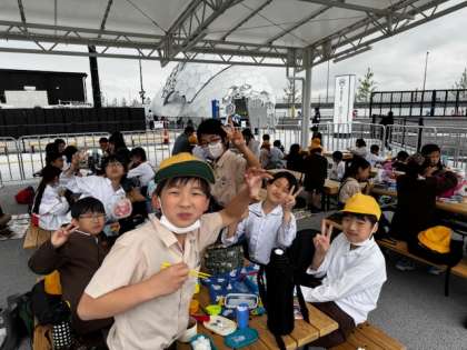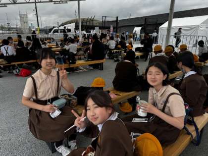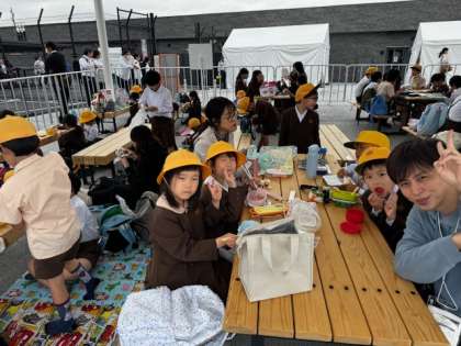 お昼ご飯を食べています。少し疲れていましたが、みなさん元気を取り戻しています!