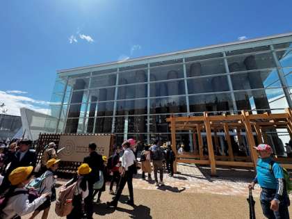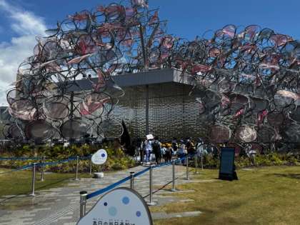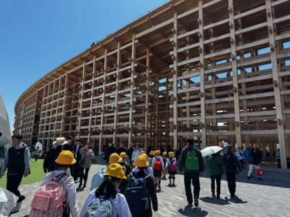 昼食後は、3つのグループに分かれてパビリオンを巡ります。1,2年生は、施設の方のご厚意で、なんとパナソニックパビリオンに入れていただきます!