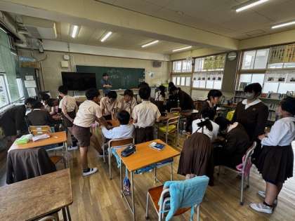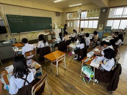 4年生の図工では、筆や指を使って色をどんどん重ねていきます。3年生が算数でタブレットを使うのもそうですが、勉強をするのもいろいろな道具を使ったほうがおもしろいと思います。また、6年生は修学旅行の取組がどんどん進んでいきます。こちらも楽しそう〜!