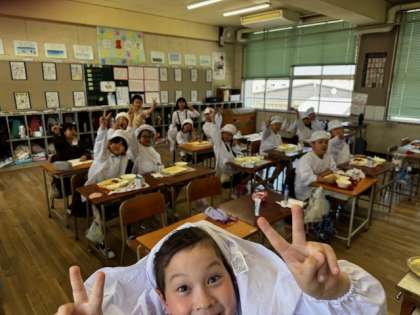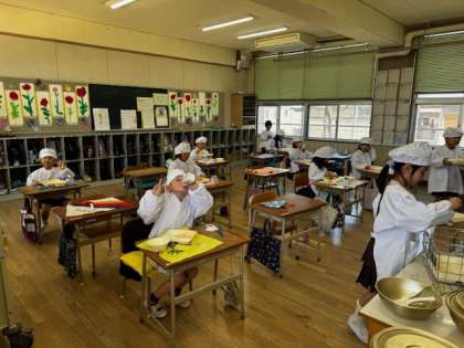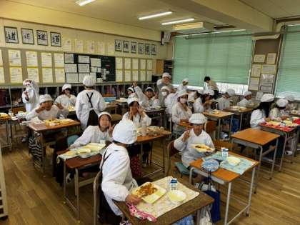 今日は沖縄県の家庭料理メニュー(タコライス、もずく汁、にんじんしりしり、牛乳)です。おかわりしてモリモリ食べてくれたり、先に食べた人は歯磨きをしたりと、のんびりと楽しい給食の時間を過ごしています。