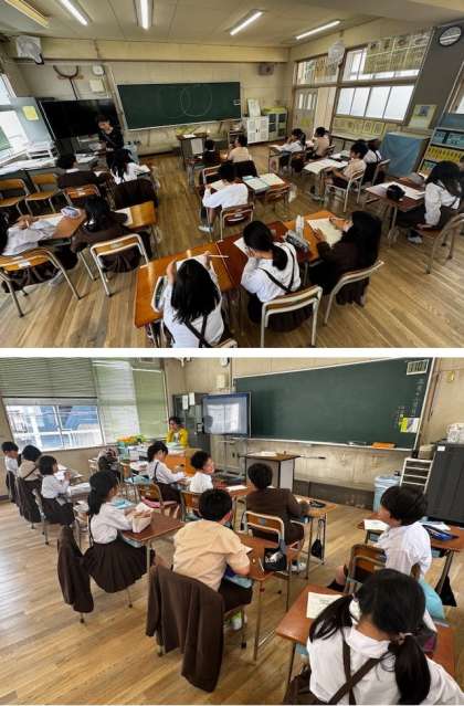 6年生は国語と算数のテストが返却されました。答案を受け取るまではドキドキ、点数をみてからは悲喜こもごものリアクションです。しっかり復習してくださいね。5年生は理科の授業で、今日の午前中の雲の動きをアメダスのホームページで見て、そこからわかることをタブレットでまとめています。個性のある発表ばかりでなかなか面白いです。