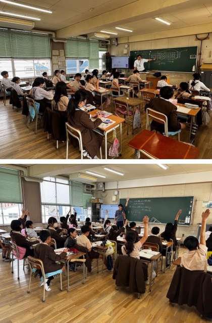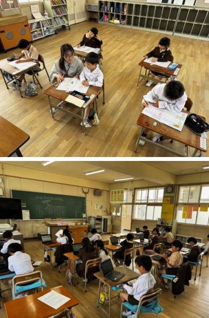 1年生は国語で「ゆ」と「わ」を練習中です。なかなか難しそうで手こずる場面も。2年生はタブレットを使ってアンケートに答えてもらっています。上手く使えていてビックリしました。3年生は体育で鉄棒に取り組んでいます。けがに気をつけてくださいね。4年生は理科「1年を通した植物の観察」のまとめ問題に取り組んでいます。難しいけどじっくり読んでほしいです。5年生は算数で比例の関係を学んでいます。みんなよく理解できていますね。6年生は算数で文字を使って関係をあらわしています。中学生でまた学ぶところですが、しっかり取り組めています。みんないいね〜!