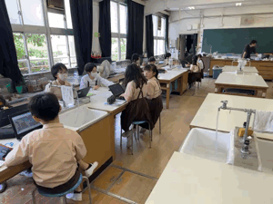1,2年生の体育では合同でボールを使った運動に取り組んでいます。ボールを上に投げて拍手したあとにキャッチするのですが、だんだん拍手の回数が増えて難しくなってきました!4年生の社会ではひとつの単元が終わりました。みなさんのノートを先生が確認するため、授業終わりにノートを提出します。5年生の理科では4年生と同じようにひとつの単元が終わりました。理科室ではKahoot!を使ってクイズ形式で復習に取り組んでいます。早さと正確さが求められていて、とても白熱しています!