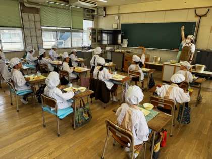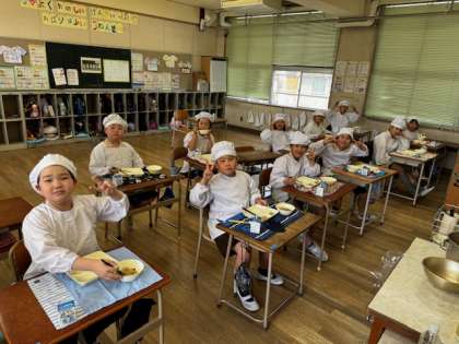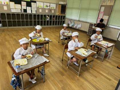 今日も給食は美味しいです!2年生はおかわりが欲しい人がたくさんいたので、先生とジャンケンして勝ち残った人がおかわりをいただきました。