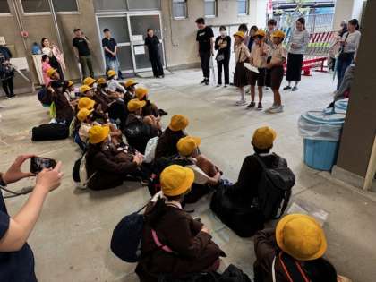 みなさん時間どおりに集合してくれました。出発式をおこなって、いざ広島へ行ってきます!お見送りいただいた保護者の皆さま、ありがとうございます。修学旅行のようすはまたホームページでお知らせいたします。