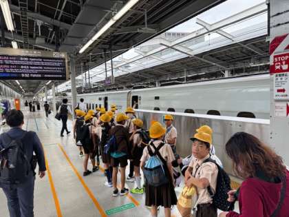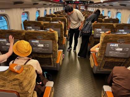 新幹線に乗り込みました!8時ちょうどに出発します!