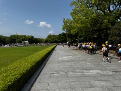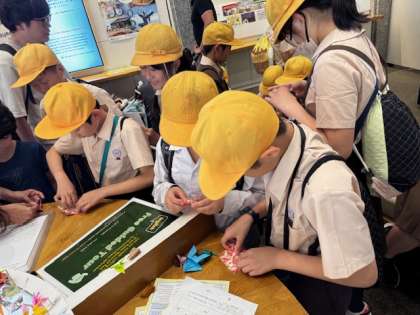 資料館では最後に想いを込めて鶴を折りました。これからオリエンテーリングを始めます。